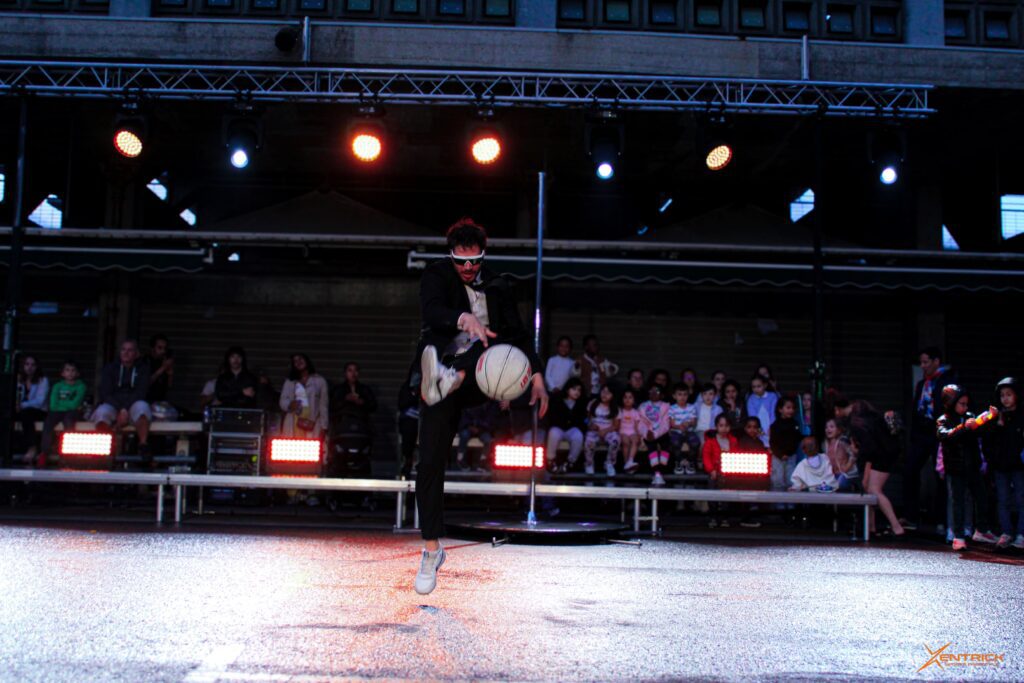 Son originalité, proche de l’univers du freestyle football mais adaptée au basket, attire instantanément l’attention et valorise votre événement.
