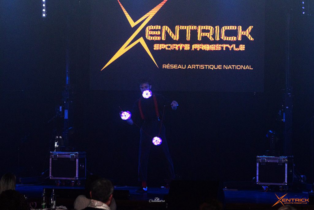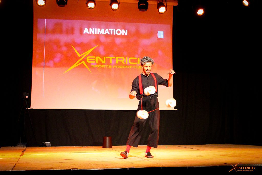 Prestation en Diabolo sous forme de Numéros avec 1 artiste(s) pendant 5 x 3 minutes pour votre spectacle sur scène ou soirée cabaret.
